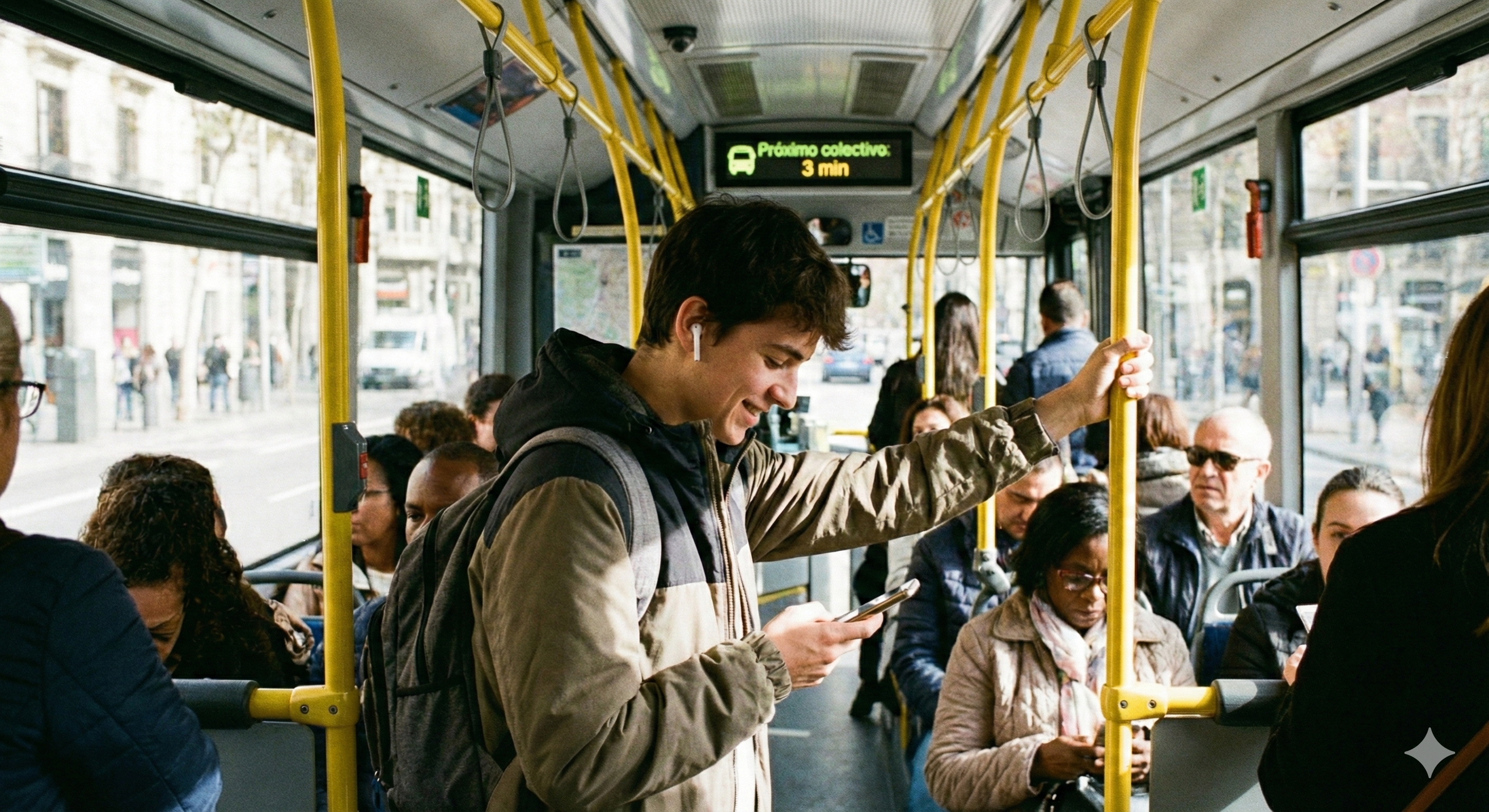 Acercamos tu propuesta a personas conectadas durante su viaje, con una exposición continua de 20 a 30 minutos, segmentación por recorrido, horario y perfil, y métricas reales de interacción.